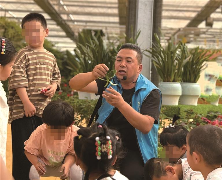 孩子们跟着老师近距离了解植物